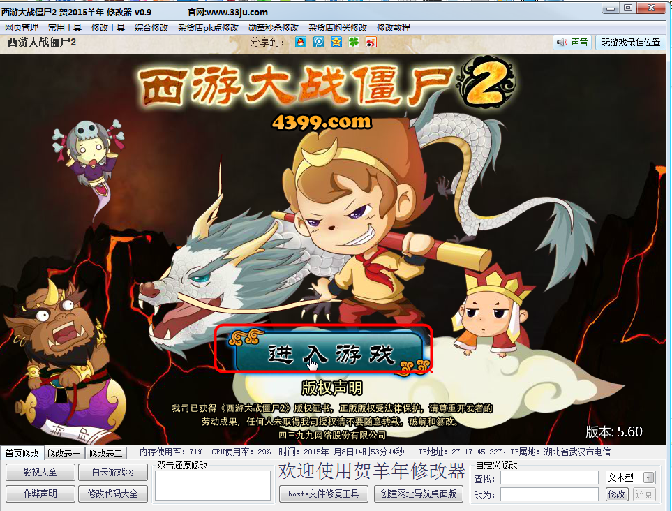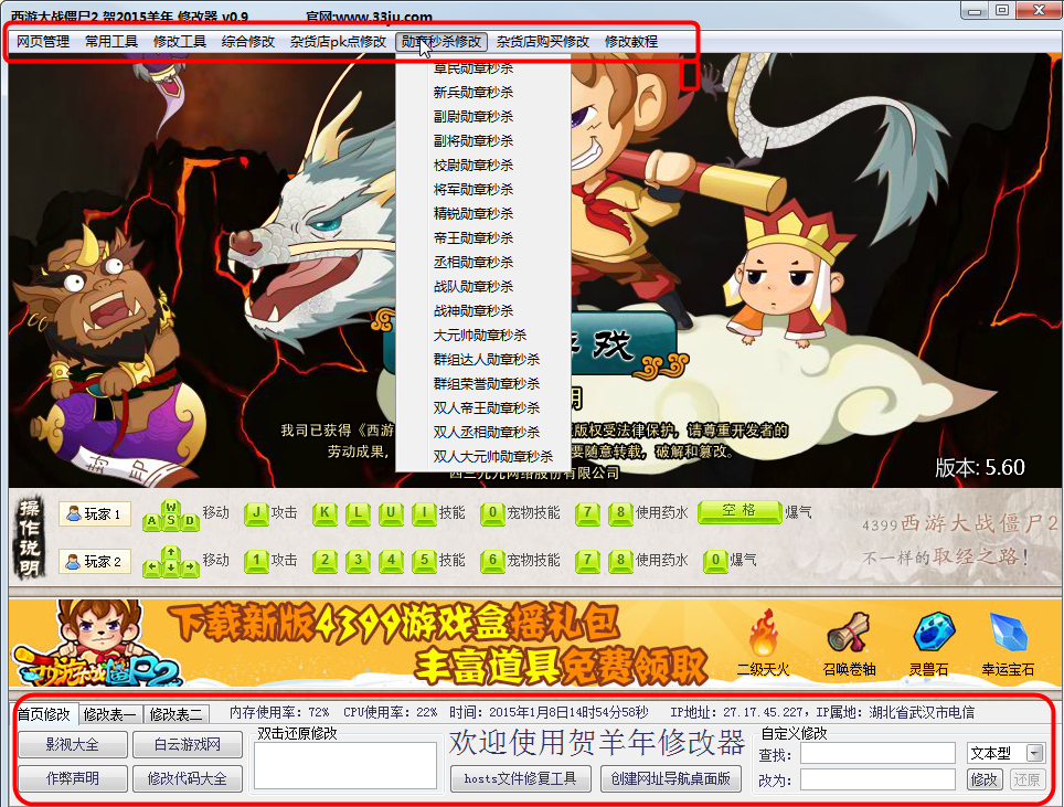 对于游戏想必每个玩过的人都会记忆深刻,毕竟都是自己曾经喜欢过的,今天给大家介绍的西游大战僵尸2贺2015羊年修改器,就是同名游戏在新年的最好的礼物,因为他具备着例如勋章秒杀等等功能,让大家轻松都能上手操作!