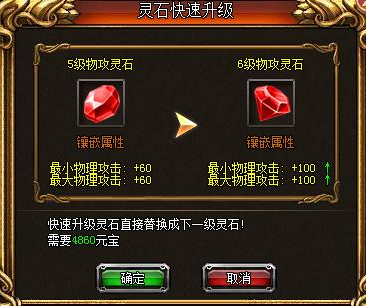 7、已经镶嵌的灵石,可以点击升级,打开灵石快速升级面板,消耗元宝,直接升级灵石。