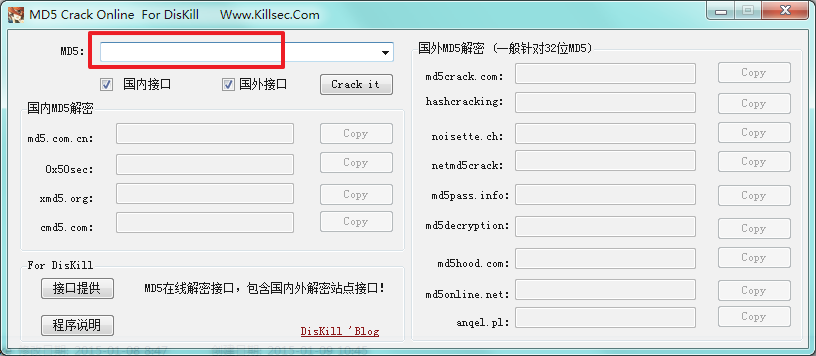 MD5在线解密工具(MD5 Crack Online For Diskill)使用方法