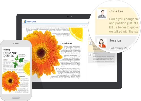 可在安装Polaris Office的计算机、智能手机、平板电脑,查看和编辑同一个文档。