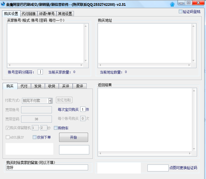 付款方式:红包付款、找人代付、支付宝余额付款购买方式:单拍、加入购物车同时支持adsl自动换ip;