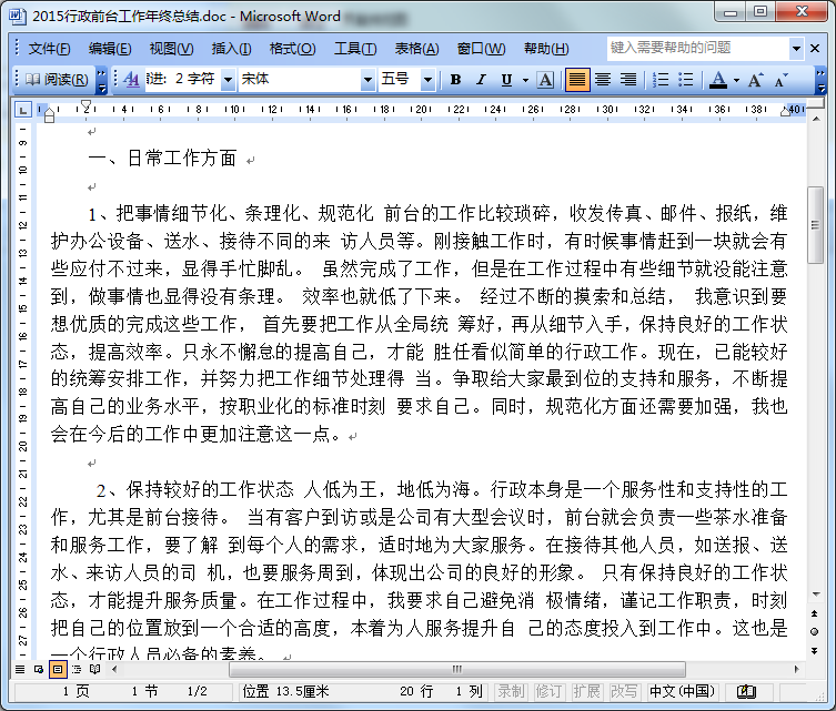 2015年到了,对于上一年的工作或多或少都会做一些工作总结,这里给大家带来的是2015行政前台工作年终总结,doc格式,需要的朋友可以下载后进行编辑。
