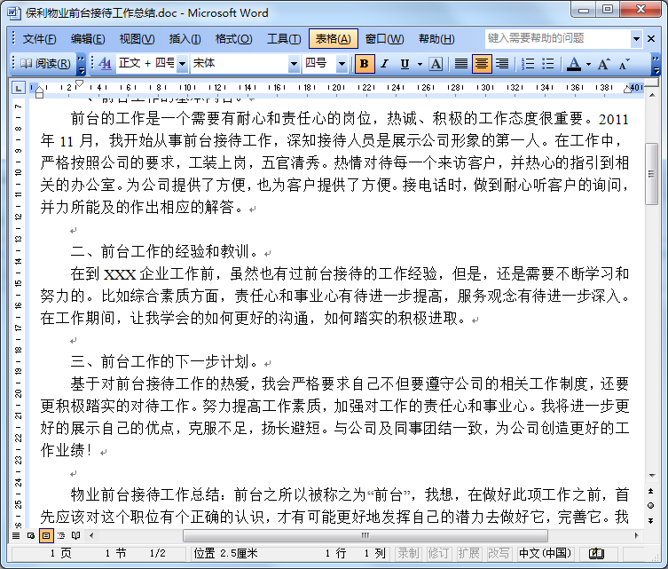 这里给大家分享的是保利物业前台接待工作总结,格式是doc文档,需要的朋友下载后可以根据自己的需要进行编辑。