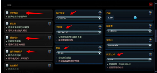 显示驱动:DX9可以获得更好的画面 OpenGL对低配兼容更好但是OpenGL高设定可能有些电脑的水池看起来像一