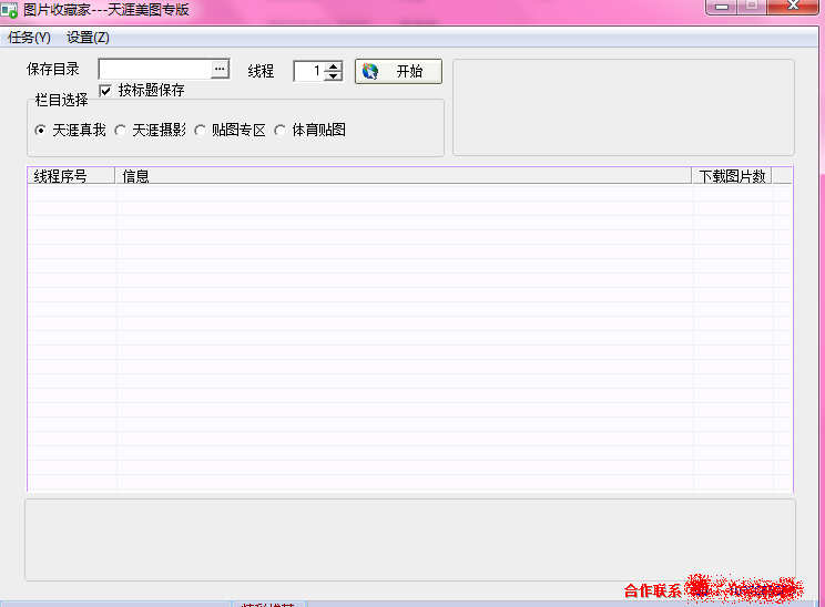 图片收藏家猫扑美图专版,在宽带环境下,平均每分钟能下载100张左右的图片,一个小时下来,就能接近1万张相片。如果你喜欢上网看MM、看秀丽风景、看网友的摄影作品,图片收藏家肯定是您最好的助手。 图片收藏家,是一款免费软件,您可以无任何限制地使用该系列的软件。虽然是免费软件,我们依然会不断地进行升级,附加更多的功能进去,也会针对大家的需要,开发更多论坛图片的系列下载软件。