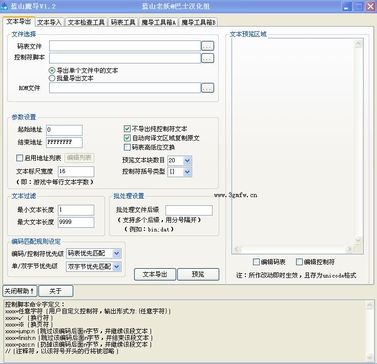 支持单个文件文本导出,高速批量文本导出,文本长度过滤,批量文件过滤,码表高低位交换等功能