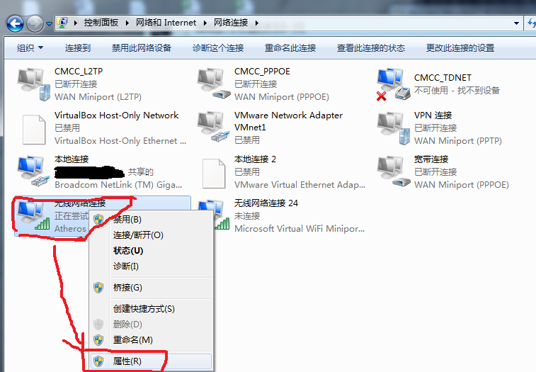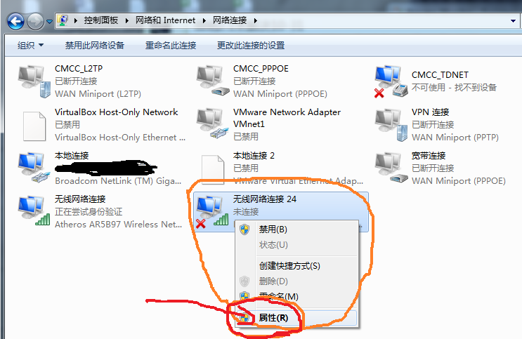 1、打开网络与共享中心,找到虚拟网卡与无线网卡