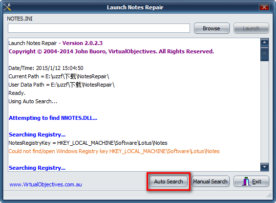 自动搜索,一键搜索lotus notes配置文件检测并修复。