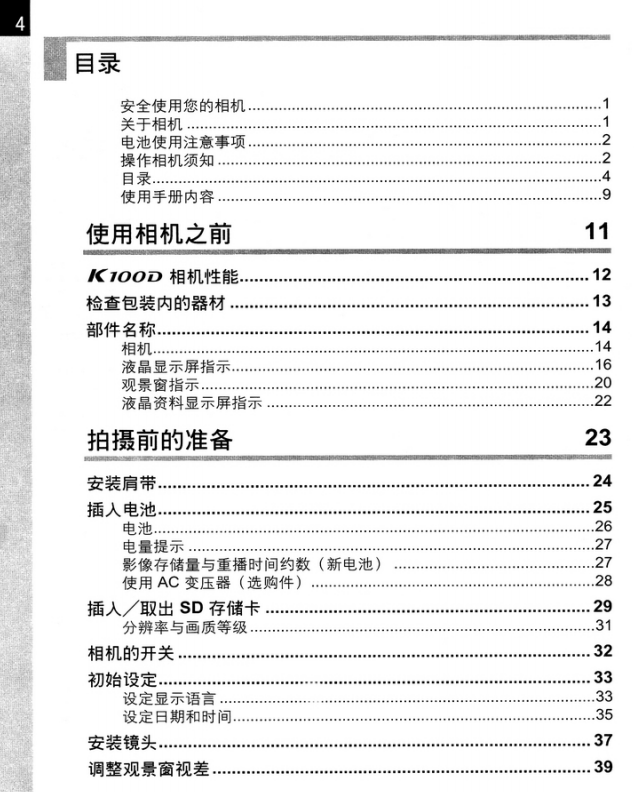 宾得K100D是一款具有机身防抖功能的数码单反相机,本节内容中小编要为大家带来的是关于这款相机的中文使用指南(pdf格式免费版宾得k100d说明书),有需要的朋友可以点击本文下方的下载地址进行下载查阅!