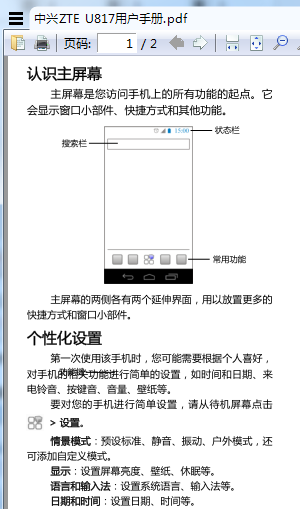 中兴ZTE U817是一款4.5英寸3G智能手机,Android OS 4.0操作系统,双核处理器,支持WIFI和蓝牙,后置300万像素摄像头。以下文档是中兴ZTE U817使用说明书,有需要的朋友可立即下载此文档。