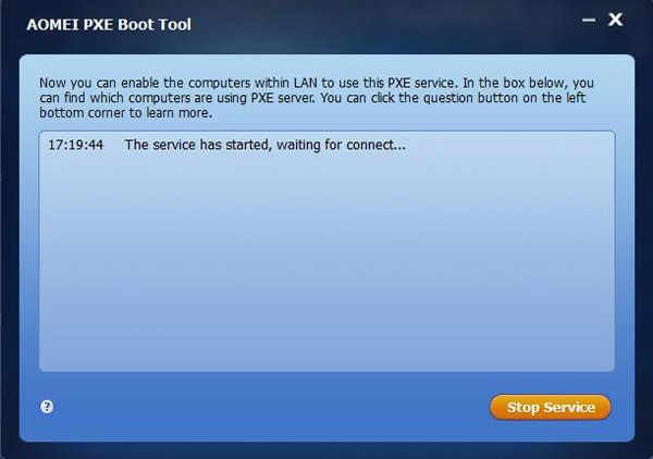 步骤3。在点击“启动服务”,奥美PXE启动工具将配置相关的数据自动启动服务,等待目标计算机。请参考下面的截图: