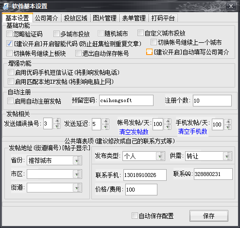 彩虹赶集发帖专家是一款免费易用的赶集网自动发帖软件。该软件界面干净、简单,智能推广、智能发帖,自动换IP,完美实现异地发帖,绝对的超一流营销神器。欢迎有需要的用户下载使用!