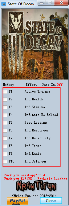 腐烂国度全版本九项修改器+19(MrAntiFun版)怎么用