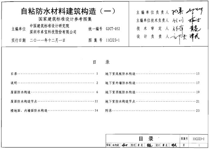 国标11CJ23-1自粘防水材料建筑构造(一)高清图集内容截图