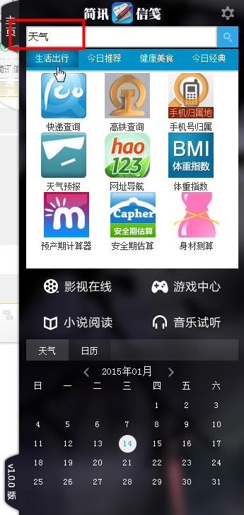 简讯信笺2015其实就是款多功能的桌面应用管理软件,它最大的特点就是快速查询天气,随时查看日历,了解最新资讯等等,这些都够一键操作,相当的方便!喜欢都可以