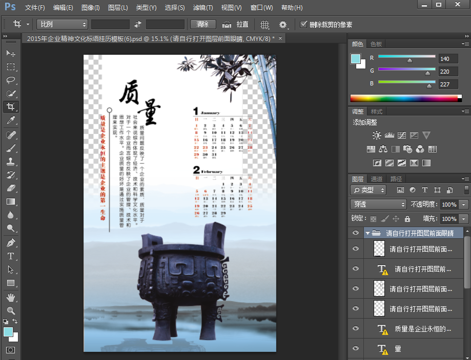 2015年企业精神文化标语精美挂历模板素材