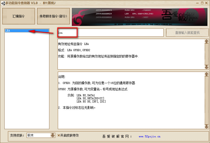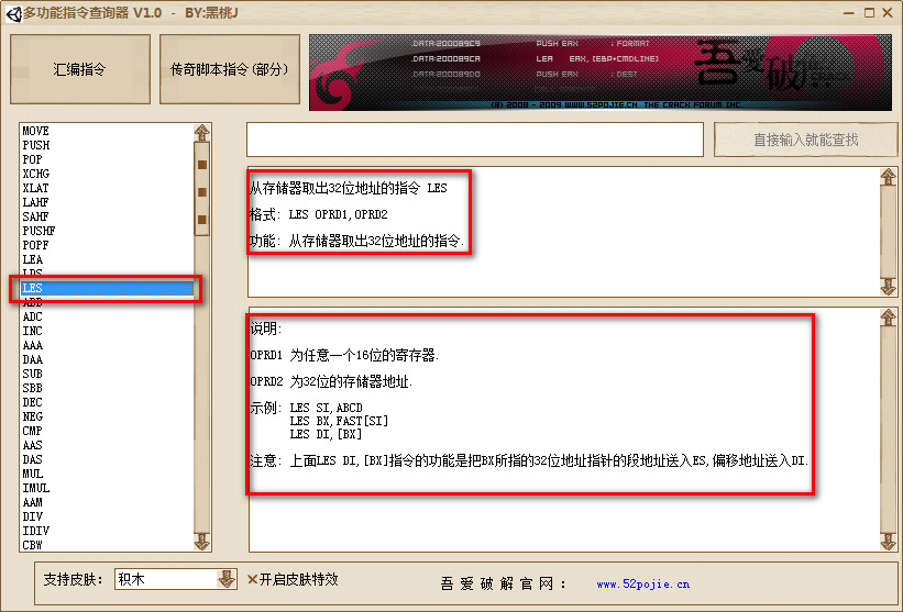 黑桃多功能指令查询器其实就是现在用的最多的汇编语言指令查询工具,大家能够通过他直接输入相关的指令,就可以快速得到相应的数据,操作非常方便,对于需要的强烈建议下载来使用!
