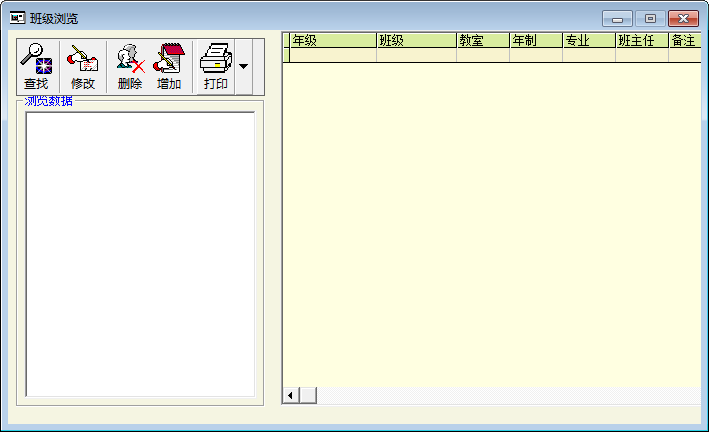 2、班级管理子功能可以对全校的班级进行汇总,以及增加,修改,删除,按条件查询,打印班级信息 ;