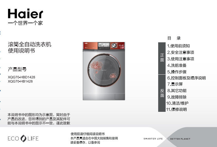 海尔xqg70 hbd1428是水晶系列的一款滚筒洗衣机,可以洗7公斤衣物,USP不间断速洗,支持烘干,这里带来的是海尔xqg70 hbd1428滚筒洗衣机使用说明书,pdf电子说明书免费下载。