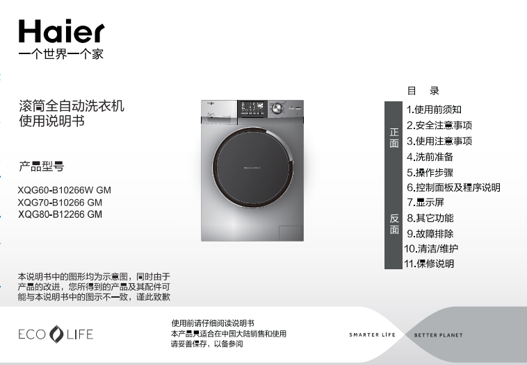 海尔xqg80 b12266gm说明书部分预览