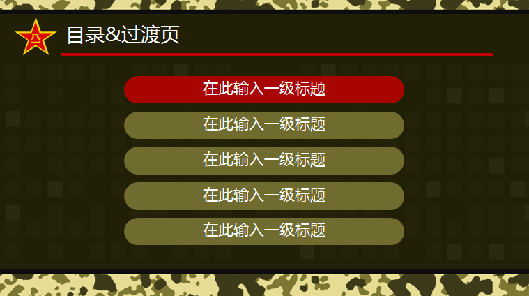 今天小编和大家分享的是一个国防ppt模板,具体为国防教育知识ppt模板素材,希望大家会喜欢这个国防教育ppt模板,迷彩风格,pptx格式,有需要的朋友可立即下载此文档。