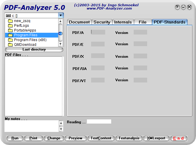 PDF文档信息查询(PDF-Analyzer)是一款能精确而详细的检查PDF文档的结构和内容的工具,PDF-Analyzer还可以用来比较文档,验证敏感元数据,以及提取机密信息。这种轻便,实用的应用程序使用户能够快速通过隐藏在PDF文件的元数据扫描,如表单字段或嵌入字体的数量,它可以让你找出各种细节上的PDF文件,如安全性信息,并进行一些修改。
