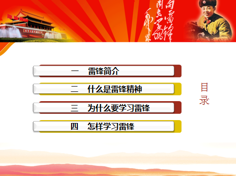 今天小编和大家分享的是一个ppt模板,具体为2015年学习雷锋精神党课ppt模板,大气红色风格,ppt格式,希望这个学雷锋ppt模板大家会喜欢,有需要的朋友可立即下载此文档。