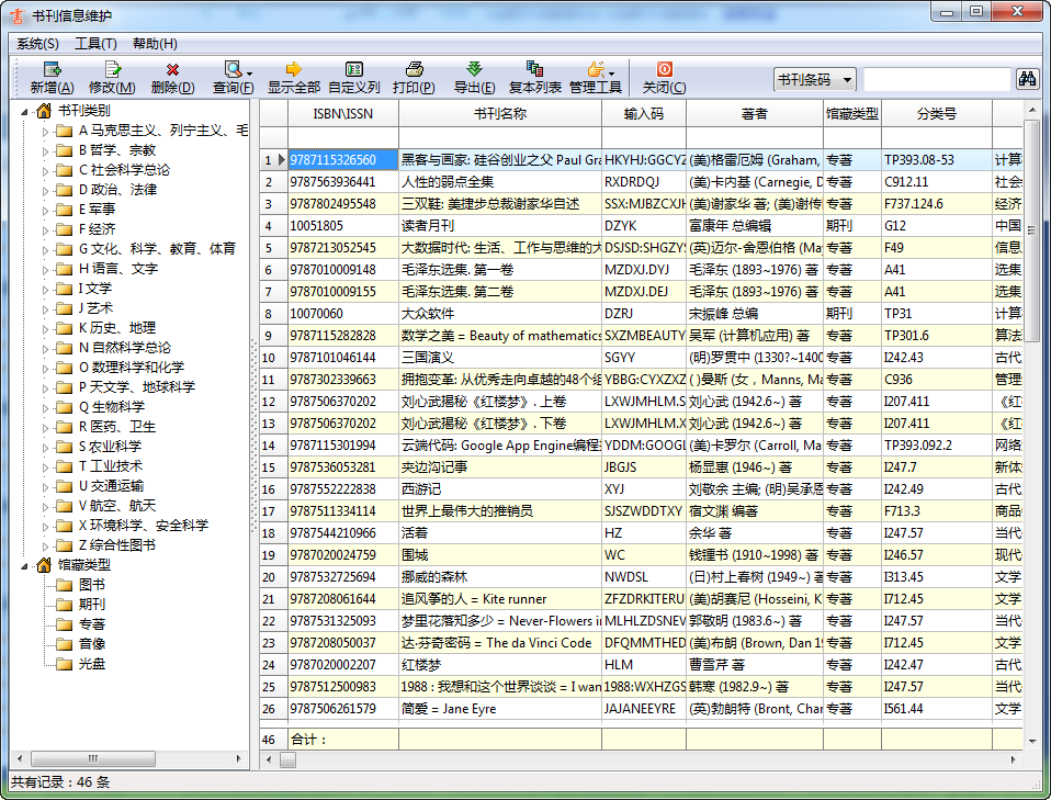 系统采用《中国图书馆图书分类法》(中图法),可任意扩展,也可使用其它图书分类法;