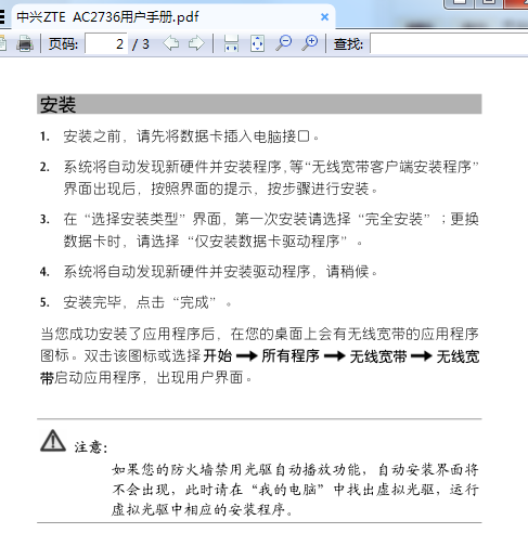 中兴ZTE AC2736是一个3G上网卡,内置天线,支持Micro SD卡,最高可支持4GB,支持短信群发。以下文档是中兴ZTE AC2736上网卡使用说明书,有需要的朋友可立即下载此文档。