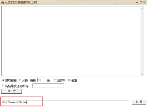 1、将带有邮箱的有效网址输入底端地址栏,点击执行直接提取.