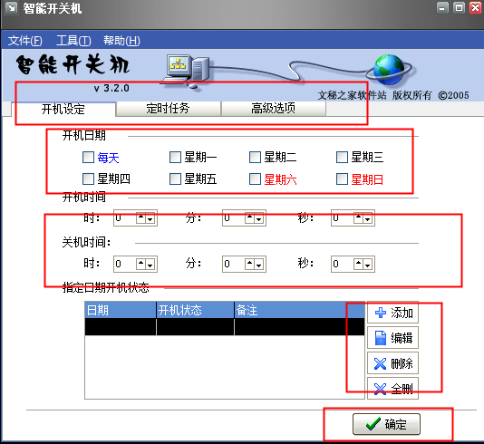 开机日期 开机时间 计算机自动开启的日期和时间。如果你想取消此功能,请设置时间为0时0分0秒。