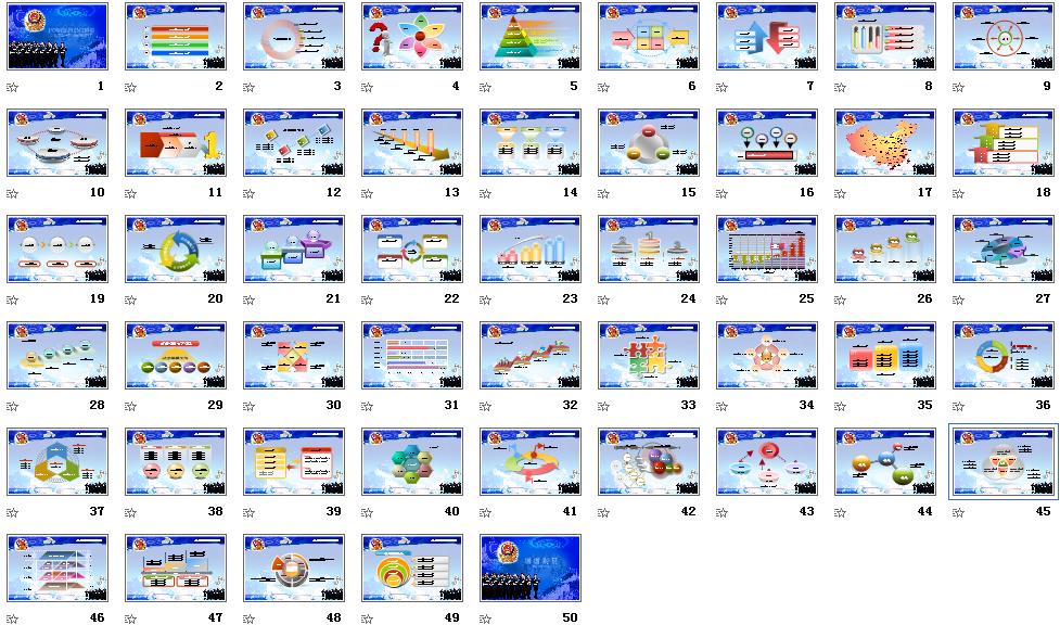 这里分享的是2015公安警察年终总结ppt模板,蓝色大气风格,以威武的警察为背景,公安警察、派出所工作总结,ppt格式文档,一共有50页,大家可以免费下载使用。