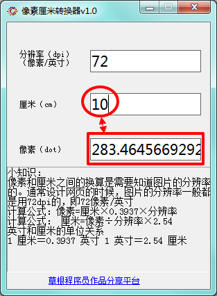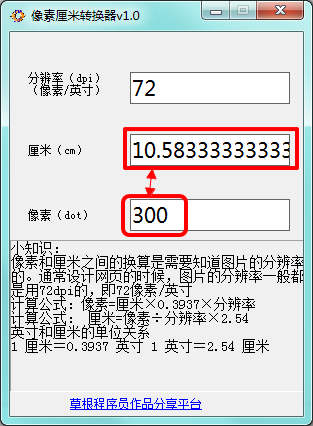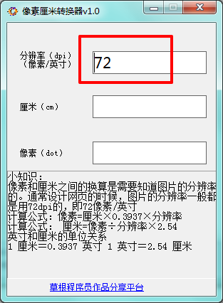 2、输入需要进行转换的单位:厘米或像素,软件将自行转换