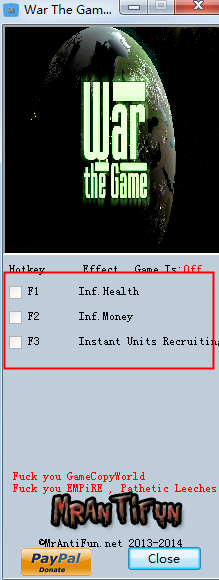 战争游戏三项修改器+3(MrAntiFun版)使用方法