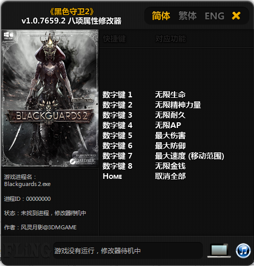 黑色守卫2八项属性修改器可完美修改游戏数据,无限生命 、无限AP、无限金钱、无限耐久等8项功能,让你爽个够。轻松虐杀各种难度,欢迎下载体验!