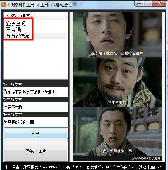对对于新年到来,朋友们就该做好开心过好每一天的准备,如果心情很不愉快的话,就可以开这里选择六趣网神对话制作工具,就是通过自己选择图片模板,然后输入很多搞笑的话语,就可以生成很多开怀大笑的图片,特别适合不会ps的朋友来进行使用。