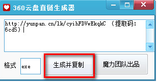 使用非常简单,在360云盘分享后得到下载地址和提取码,直接复制并粘贴到工具里面,点击【生成和复制】即可