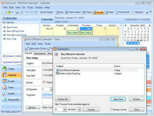 2. 提供多种日历视图安排和跟踪您的约会和事务,如天、工作周、周、月或者年视图。