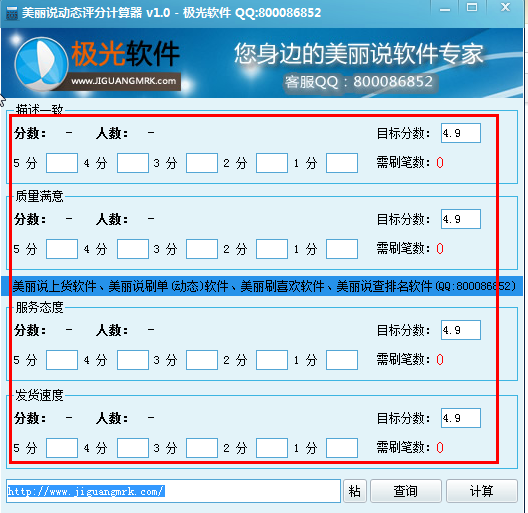 美丽说动态评分计算器其实就是“美丽说”购物社区专门计算动态评分的工具,这块软件只需要输入相当信息,就能一键快速得出准确的结果,确实相当的好用,喜欢的都可以来此下载!