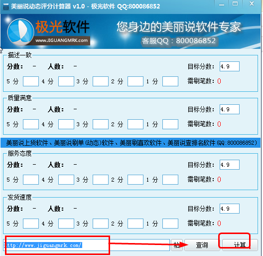 2、之后输入店铺的网址,点击【查询】与【计算】,就可以知道详细情况