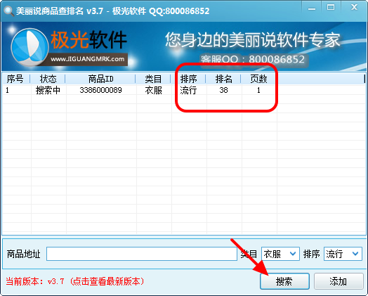 2、添加完成后,点击【搜索】即可查看相关宝贝排名信息