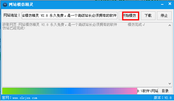 1.本软件绝对安全无病毒。(有的杀毒软件会误报,请把本软件添加为信任软件) 模仿的网站是保存在软件运行的目录里,用户也可以自定义下载目录,在开始模仿网站的时候软件会有点卡,因为本软件正在获取网站连接。