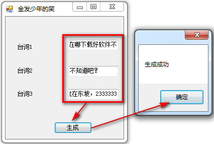 1、打开软件,可根据根目录图片的表情写三句台词,点击【生成】
