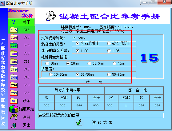 此软件最大的优点,帮助那些不想去记很多的混凝土配合比的人群.