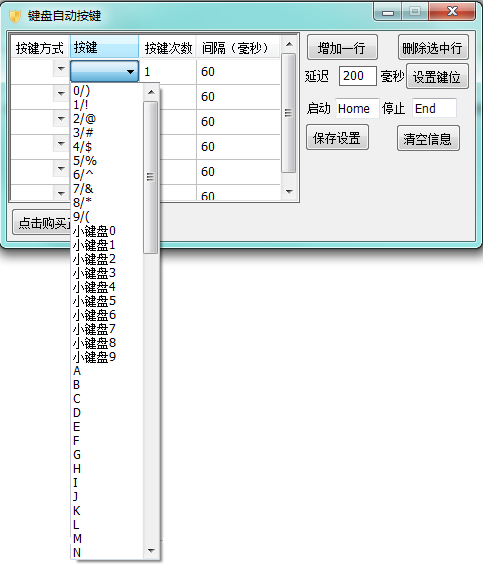 2、设定表格内按键次数和间隔(单位:毫秒)和表格右侧延迟(单位:毫秒)