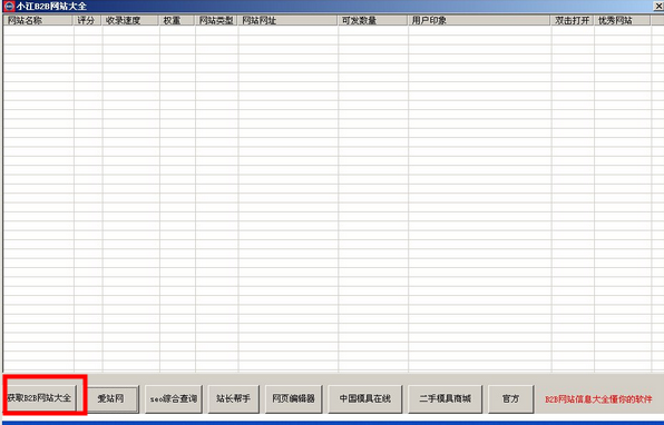 小江B2B网站大全软件其实就是款功能非常强大的网站信息收集工具。它的最主要的特点就是准确收集那些权重非常高的B2B网站,已满足需要的朋友来进行使用!