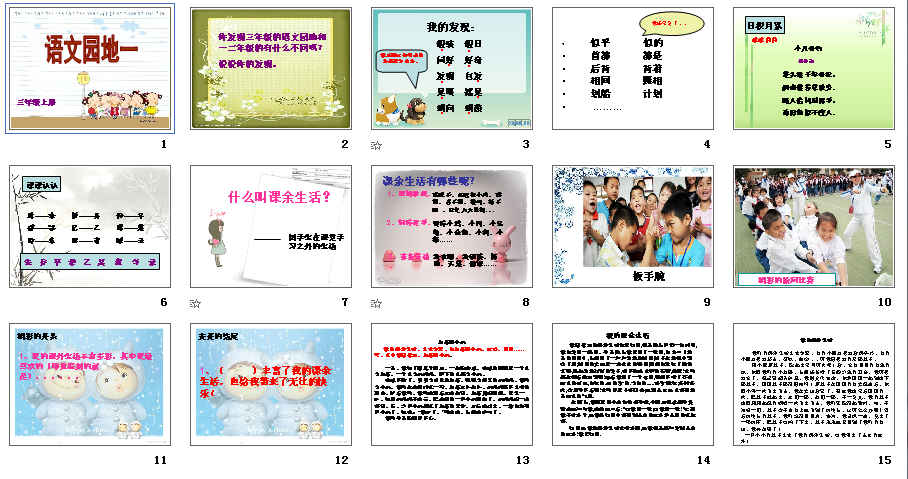 小学语文课本每个单元结束后有语文园地作为总结,这里带来的是人教版三年级上册语文语文园地一ppt课件,三年级的语文园地和一二年级的有什么不同呢?喜欢的朋友马上下载三上语文园地一ppt课件吧。