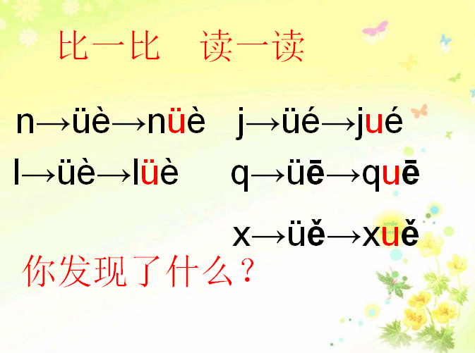 1、学会复韵母ie、üe,学会特殊韵母er及其四声,读准音、认清形、正确书写。学会整体认读音节ye、yue。
