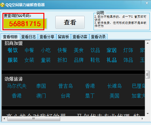 很多时候我们想看那些不是好友的空间,但是总会被无情的拦在外面,其实只需要现在用qq空间暴力破解查看器,就可以非常霸气的无视空间设置问题,从而轻松进入其中观看想要的信息!