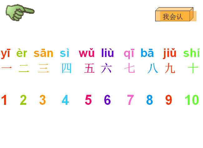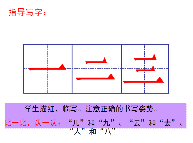 1、认识12个字,会写“一、二、三”3个字。认识1种笔画“”。